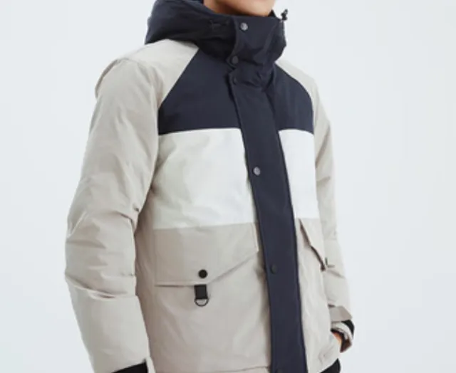 ▶该款羽绒服采用拼接设计,提升造型层次感