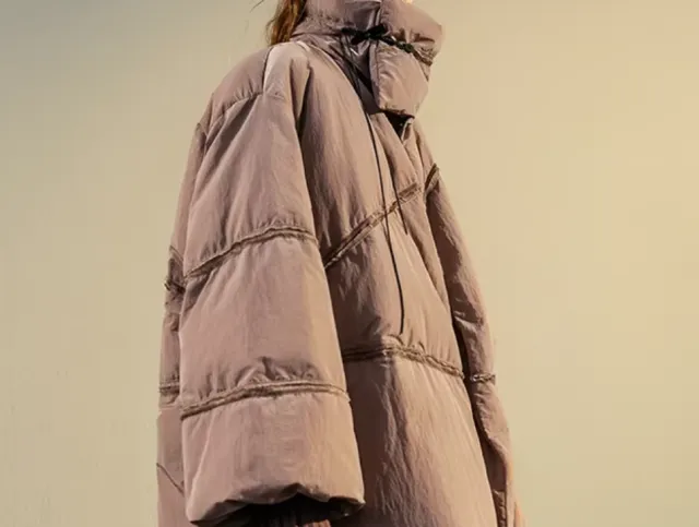 ▶该款羽绒服采用立领设计,保暖同时提升造型感