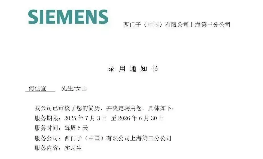 何佳宜靠专业匹配敲开西门子大门