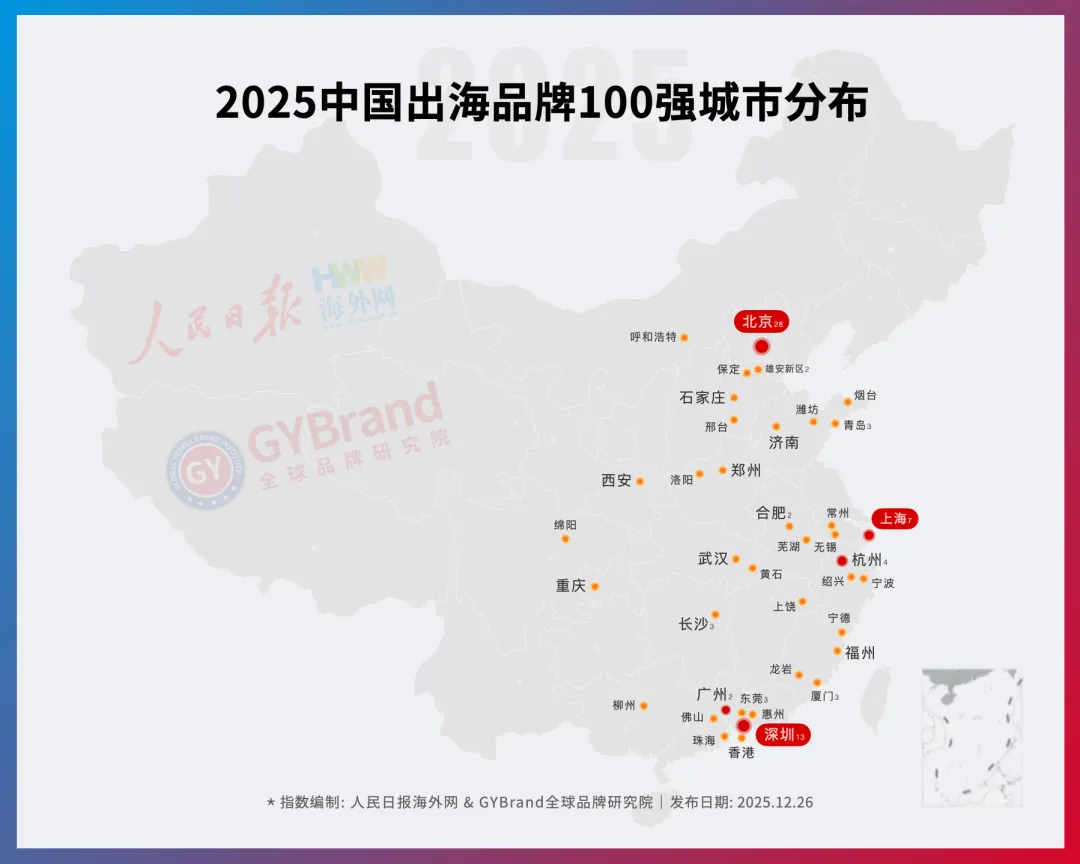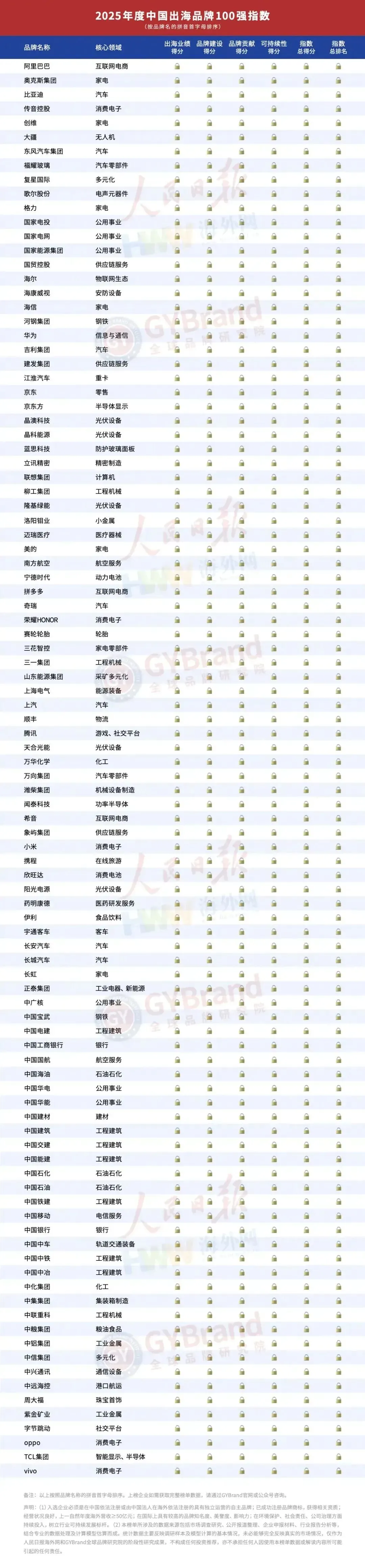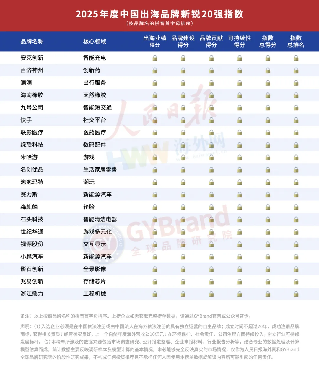 会上,由人民日报海外网与GYBrand全球品牌研究院联合编制的《2025年度中国出海品牌百强指数发展报告》正式发布。该报告从出海业绩、品牌建设、品牌贡献、可持续发展四大核心维度进行综合评估,全面展示新时代中国企业高质量出海最新成果。现场同期揭晓的“2025年度中国出海品牌新锐20强指数”,则进一步揭示了中国品牌全球化浪潮中的新势力版图。
