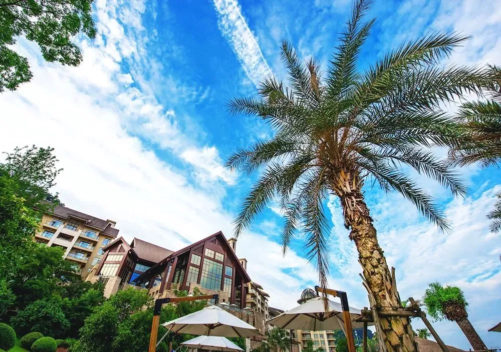 穿梭在酒店户外,一线湖景+大面积热带风情泳池,园林景致颇有巴厘岛风,度假feel十足。