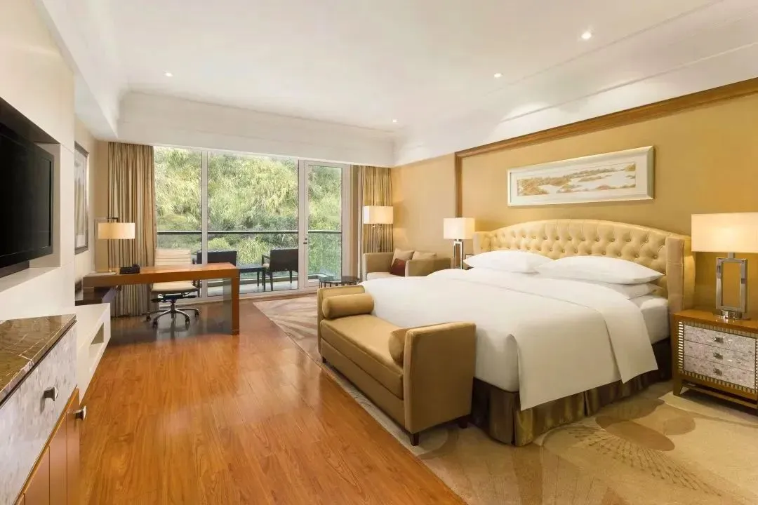 大多数客房都是全景落地窗+阳台,湖景房拉开窗帘就能看到湖光山色,部分客房浴缸还设在落地窗前,可一边泡澡一边赏景,惬意!