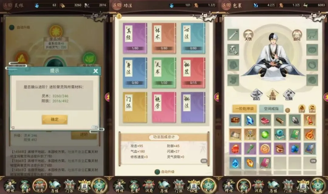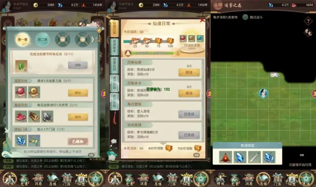 修炼与渡劫:游戏核心是提升境界,通过挂机积累修为,达到瓶颈后需渡劫才能突破。渡劫成功可开启新玩法,失败则损耗修为。