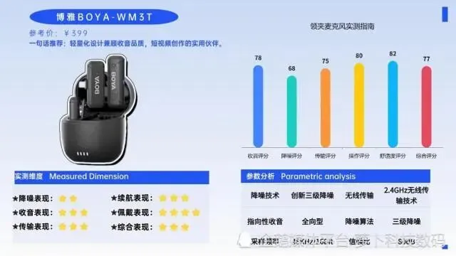 整体来看,博雅WM3T以轻量化设计、清晰收音与便捷操作,成为入门创作者的高性价比之选,完美契合日常短视频、直播及移动采访的核心需求。