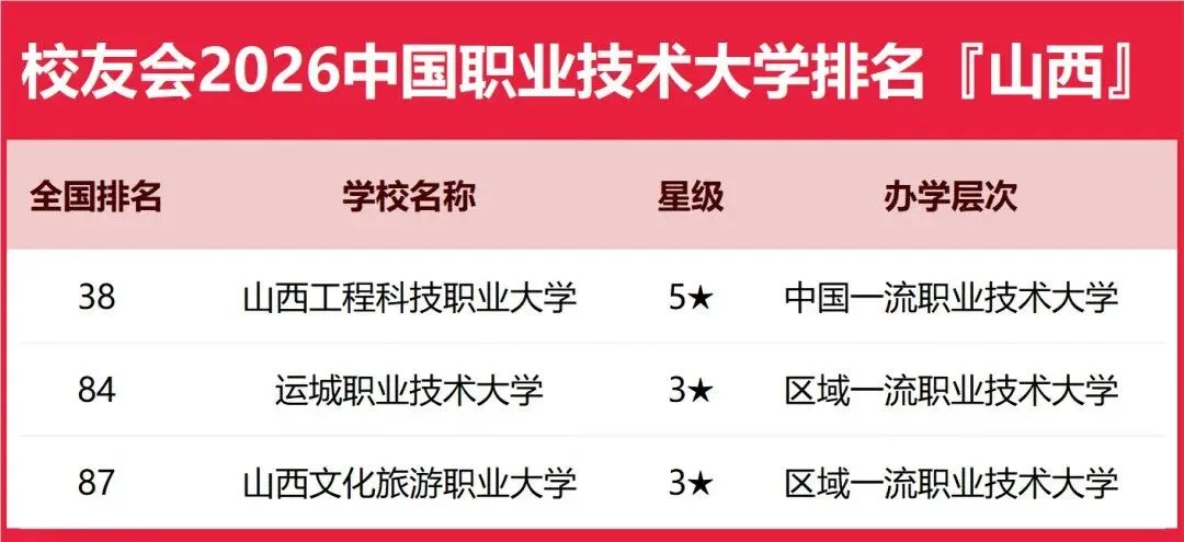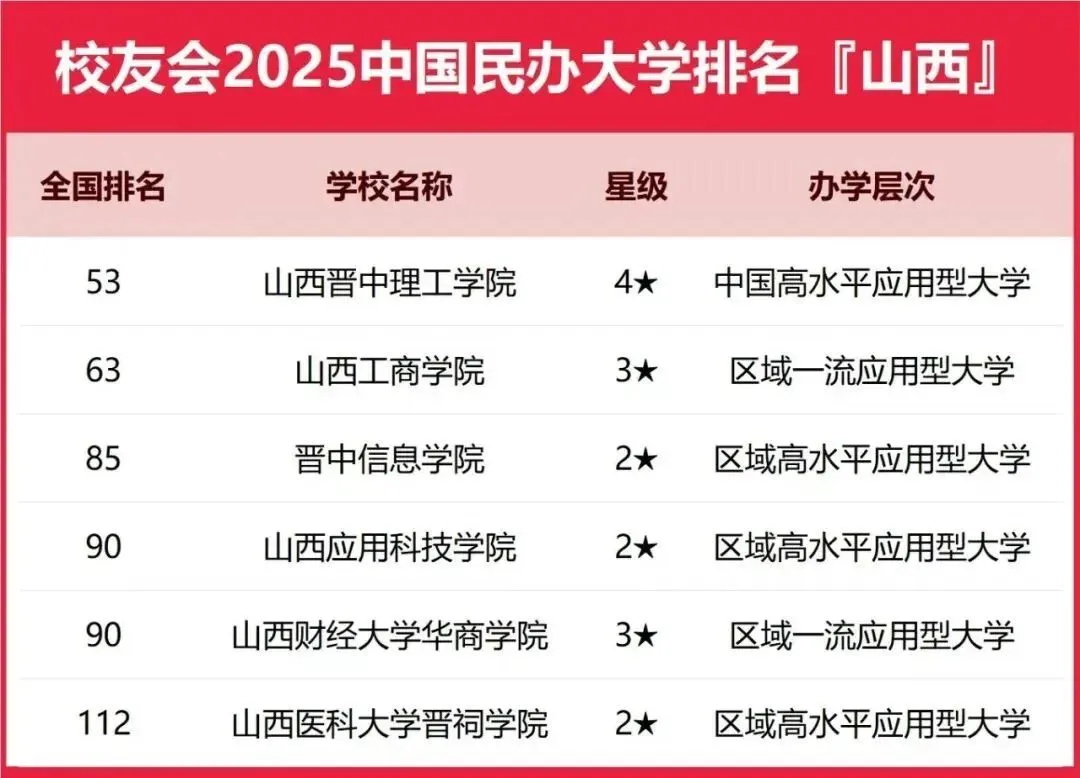 这个排名校友会每年都做,2026年的山西省大学排名是前段时间刚刚出来的,我们也第一时间进行了相关推送。