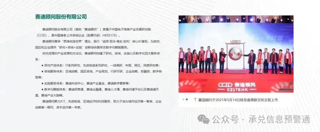 赛迪顾问官网显示,该公司隶属于中国电子信息产业发展研究院(CCID),是中国首家上市咨询企业(股票代码:HK02176)。赛迪顾问构建了研究、咨询、实施以及数字化四大服务体系。赛迪顾问2025年中期业绩显示,公司营业额约为1.29亿元,较去年同期上升约7%;毛利约为7679万元,较去年同期上升约12%,毛利率约为59%(去年同期约为57%)。公司盈利约为4299万元,较去年同期上升约12%。