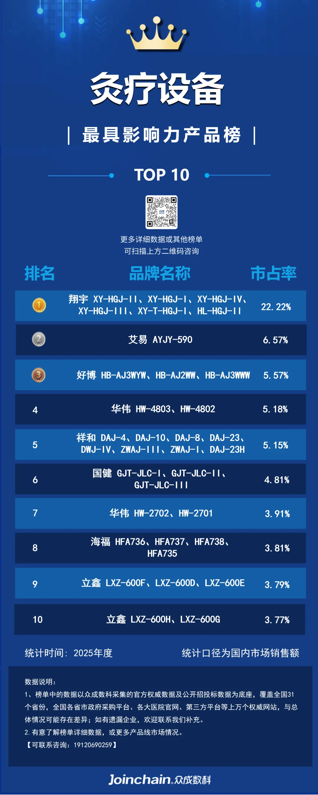 2025年度灸疗设备最具影响力排行榜:翔宇、华伟、好博排名前三,XY-HGJ系列成年度热门型号