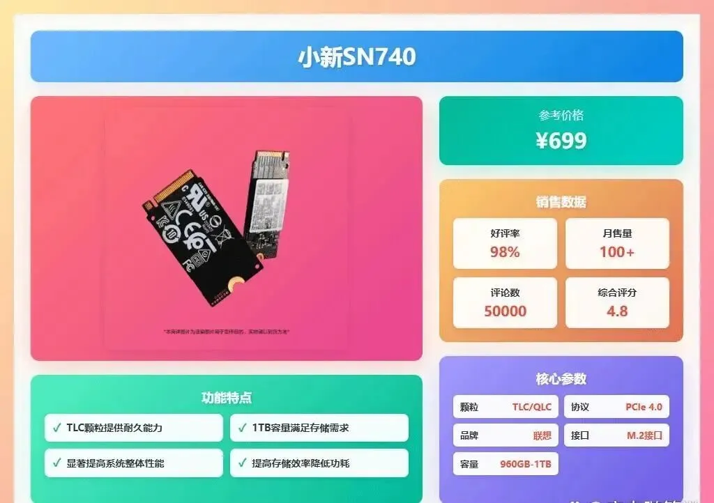 这款固态硬盘容量为1TB,满足大容量存储需求,能够轻松存放各类应用、文档和多媒体文件,存储空间还算充裕。其采用TLC颗粒和QLC NAND技术,在耐久性和功耗控制上表现还行,保障了长时间使用的稳定性和数据安全。