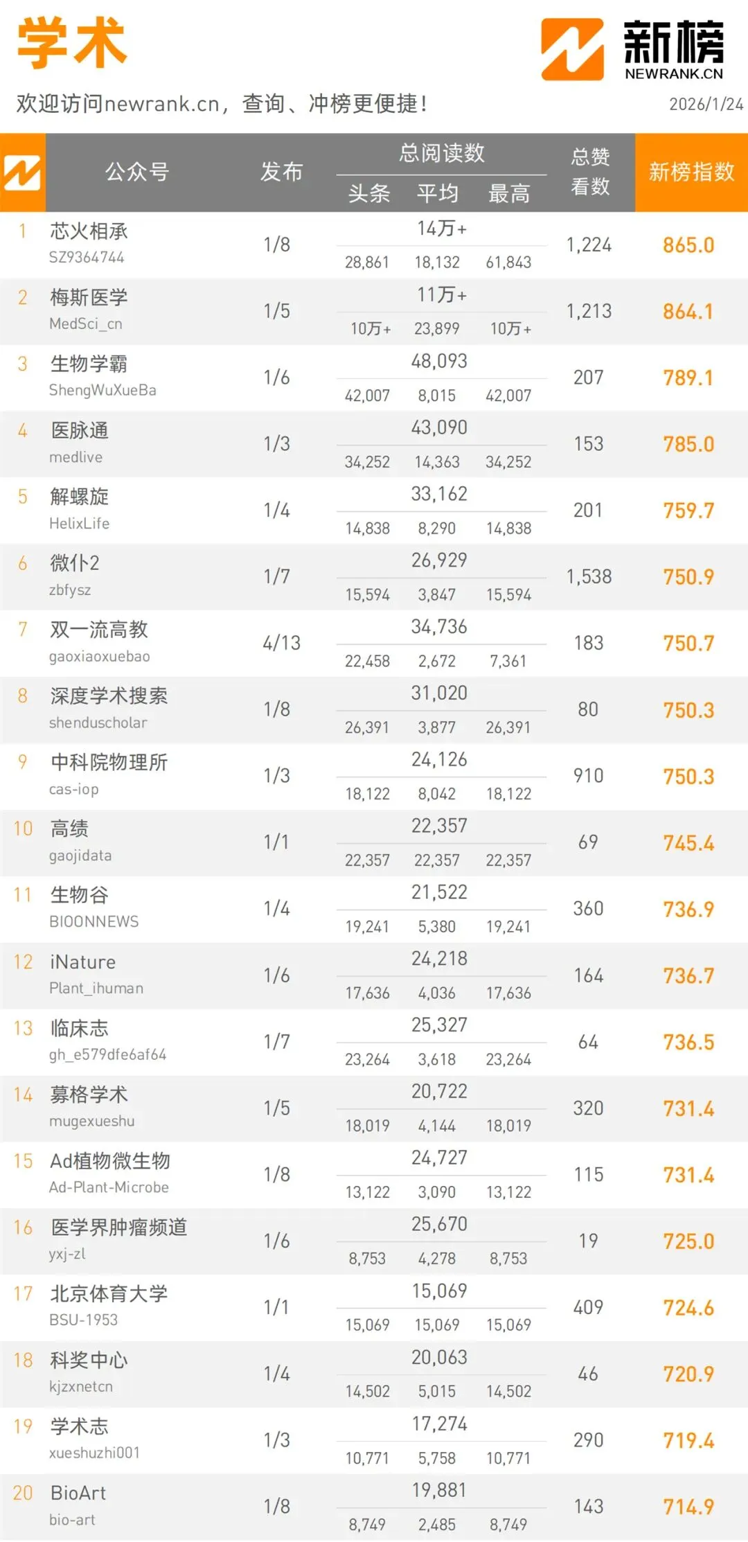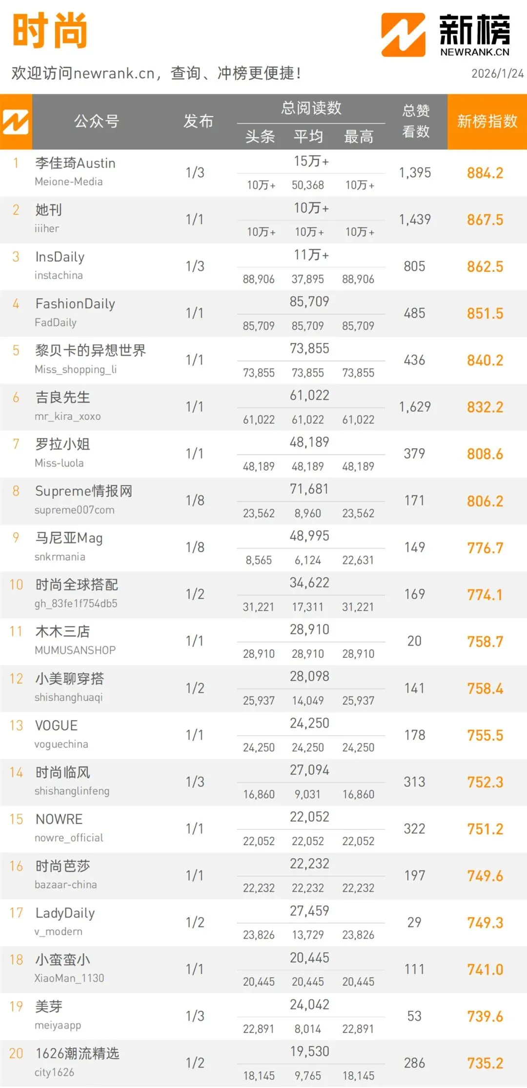 >1月24日微信公众号影响力排行榜 | 新榜发布