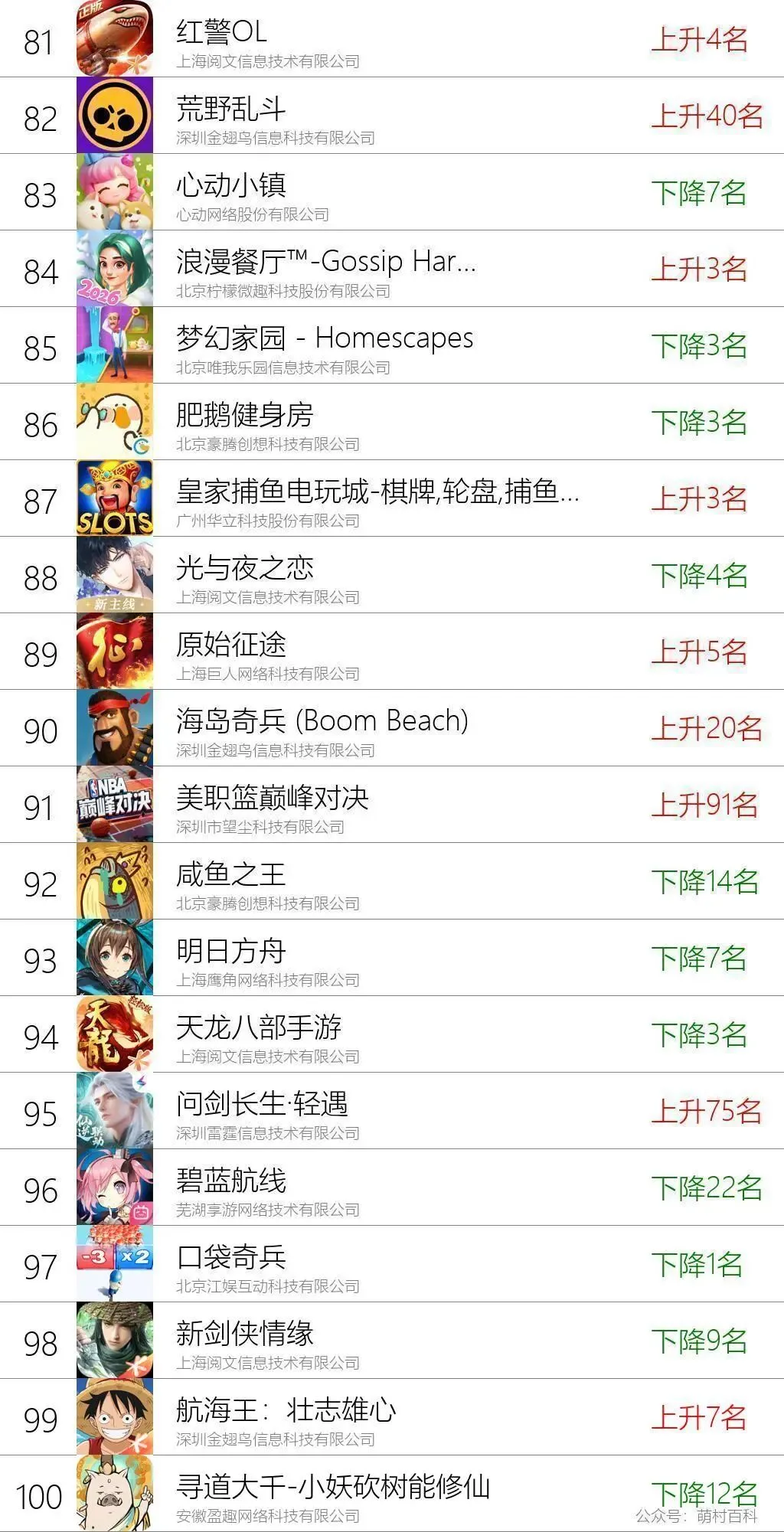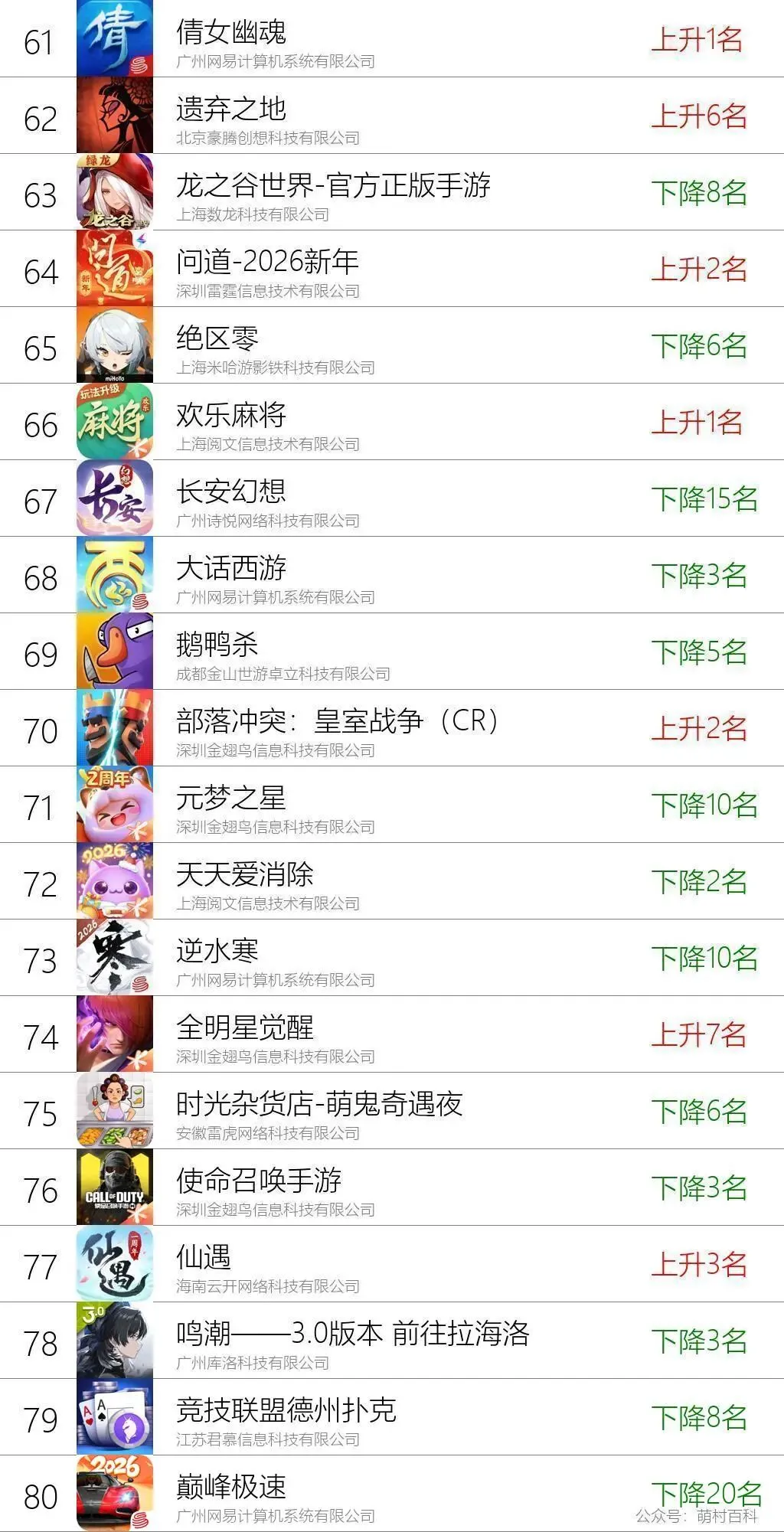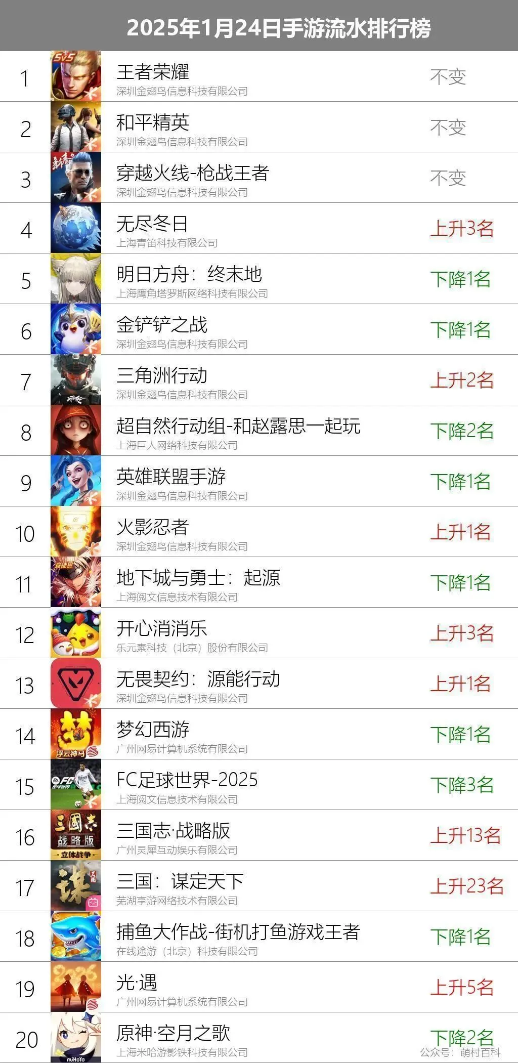 1月24日手游流水排行榜。数据来源于iOS中国区畅销榜数据,数据节点为2026年1月24日22:00。