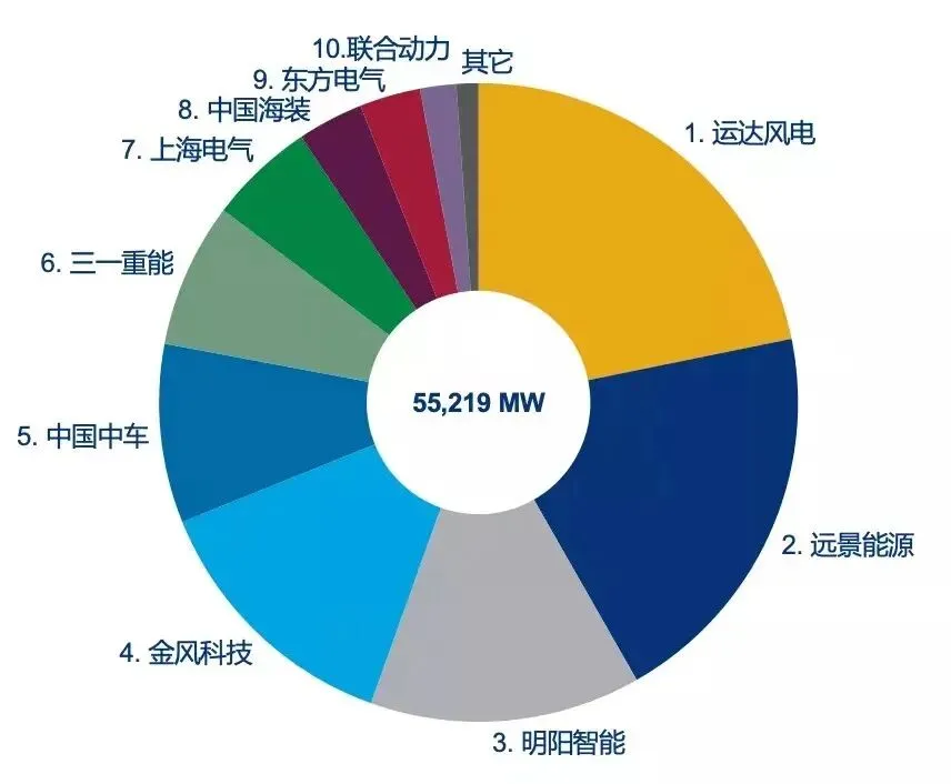 中国风电市场新签风机订单容量达到55.2GW,订单量创历年新高,同比增长152%,其中运达风电在国营和民营开发商的订单获取中均表现突出,获签订单量年度行业排名第一。