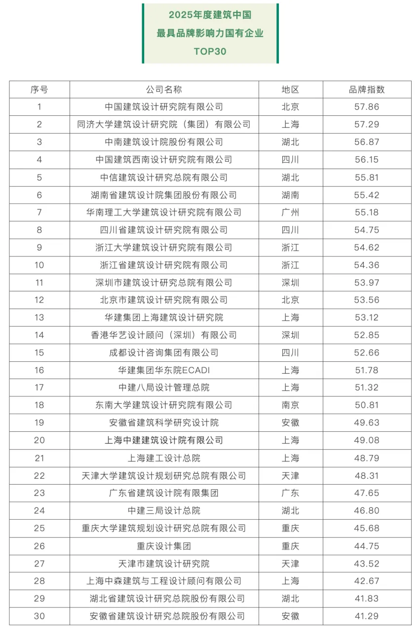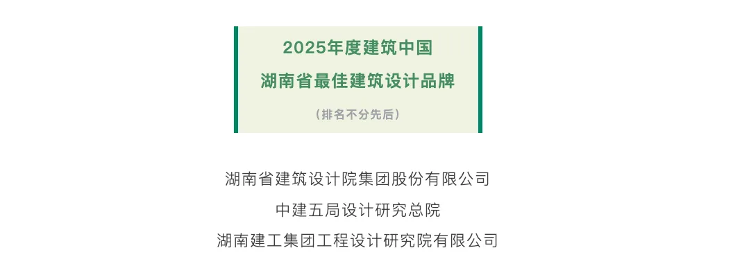 近日,ARCHINA建筑中国正式揭晓2025年度(第五届)“建筑中国·最具品牌影响力”国有企业评选结果。湖南设计凭借综合实力与品牌影响力斩获十大中国建筑设计品牌企业、十大建筑科技品牌、湖南省最佳建筑设计品牌、最具品牌影响力国有企业TOP30。