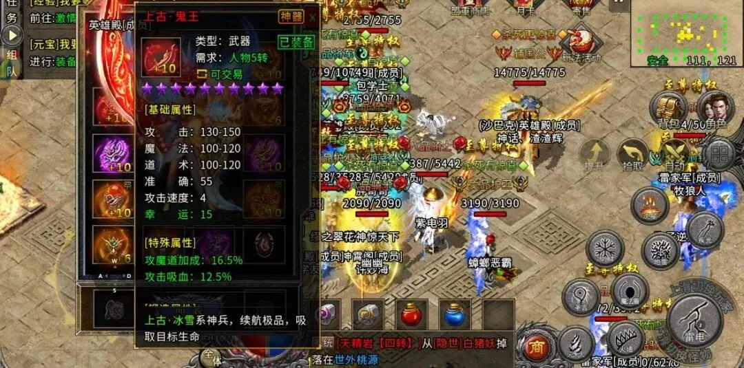 成长进阶方面,游戏进程以转职为节点:达到3转后,核心目标是刷取沃玛号角等高价值道具,建议三人组队并利用月卡传送特权提升效率,装备上优先凑齐“冰雪征服者”三件套;达到6转后,则解锁终极地图,目标转向龙鳞战甲等顶级产出,需组队挑战终极BOSS。