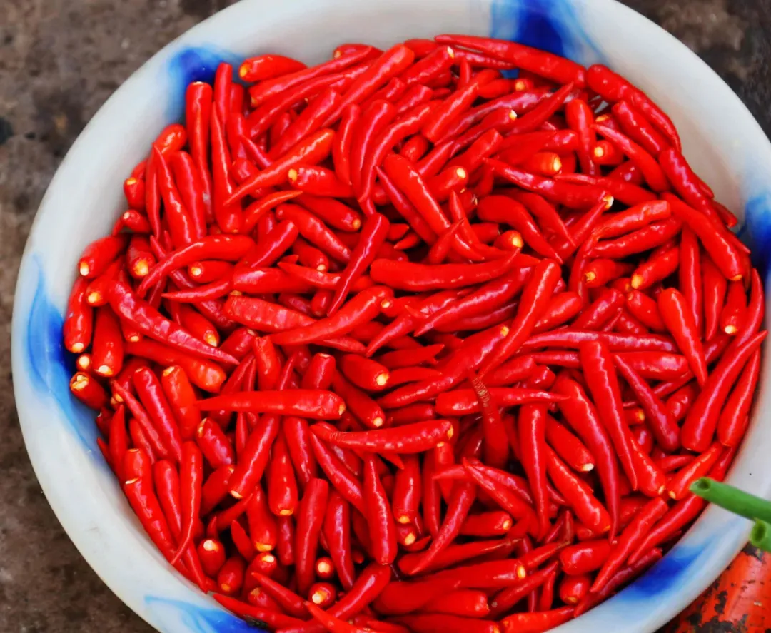 中国人吃辣的水平,在世界上不说数一数二,也能排到前五名。虽然辣椒原产地在墨西哥,进入中国仅仅只有400年历史,但中国人对辣椒的适应性极好,好到现在随便拎出一个四川人、重庆人、湖南人、贵州人、江西人,都能和墨西哥PK。中国的辣椒在短短数百年的历史上开枝散叶。第一个敢吃辣椒的人是贵州人,当地缺盐,辣椒代替盐,所以辣椒完全渗入贵州人的生活,不同食材搭配不同口味的辣椒。从贵州开始,不同种类的辣椒形成中国排行榜,你们知道最辣的辣椒是哪种吗?产于河南和贵州一带的朝天椒,是做油辣子的首选,色泽鲜亮,辣度醇香,在烹饪领域中一般作为调味存在,因为辣度偏高,但色泽、香味比不上二荆条辣椒,所以通常和二荆条辣椒一同做成油辣子。