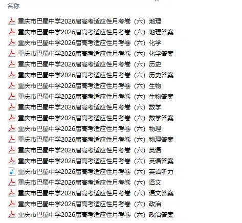 【重庆卷】百强校丨重庆市巴蜀中学2026届高考适应性月考卷(六)