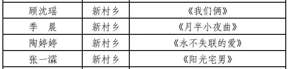新村乡入围选手名单公布!