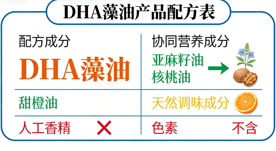 第二招查配方与协同成分。单一的DHA成分效果有限,好的产品会搭配协同营养成分,让滋养效果更全面。比如搭配亚麻籽油、核桃油等,能形成更完整的营养补充体系;添加甜橙油等天然调味成分,能改善口感,让孩子更容易接受。同时要注意避开添加人工香精、色素的产品,这类成分对学生体质不够友好。