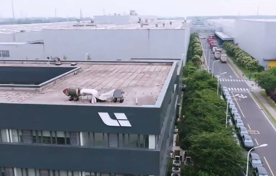 再看工厂规模,整片园区一排排车整齐停着,生产线铺开。