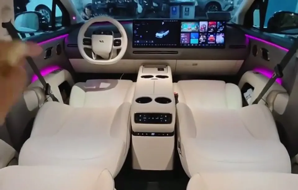 理想车内这套白色座椅,可以放倒,空间布局偏家用取向。