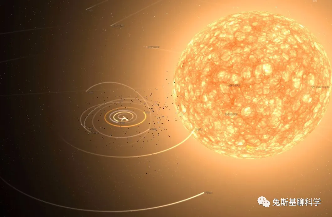 最后我们把史蒂文森2-18放在太阳系中心太阳的位置上,它的半径会超过土星轨道。土星也被它吞没了。