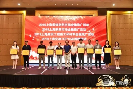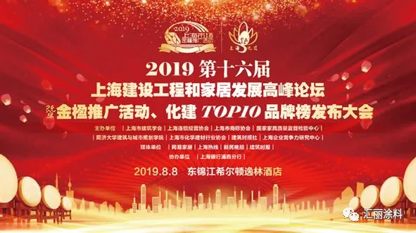 8月8日,2019第十六届上海建设工程和家居发展高峰论坛暨金楹推广活动、化建TOP10品牌榜发布大会上海隆重举行。会议现场公布了2019第十七届上海装饰材料市场金楹推广活动、2019第十一届上海家具市场金楹推广活动、2019第十二届上海市建设工程金楹推广活动、2019上海化建TOP10品牌榜荣誉榜单。