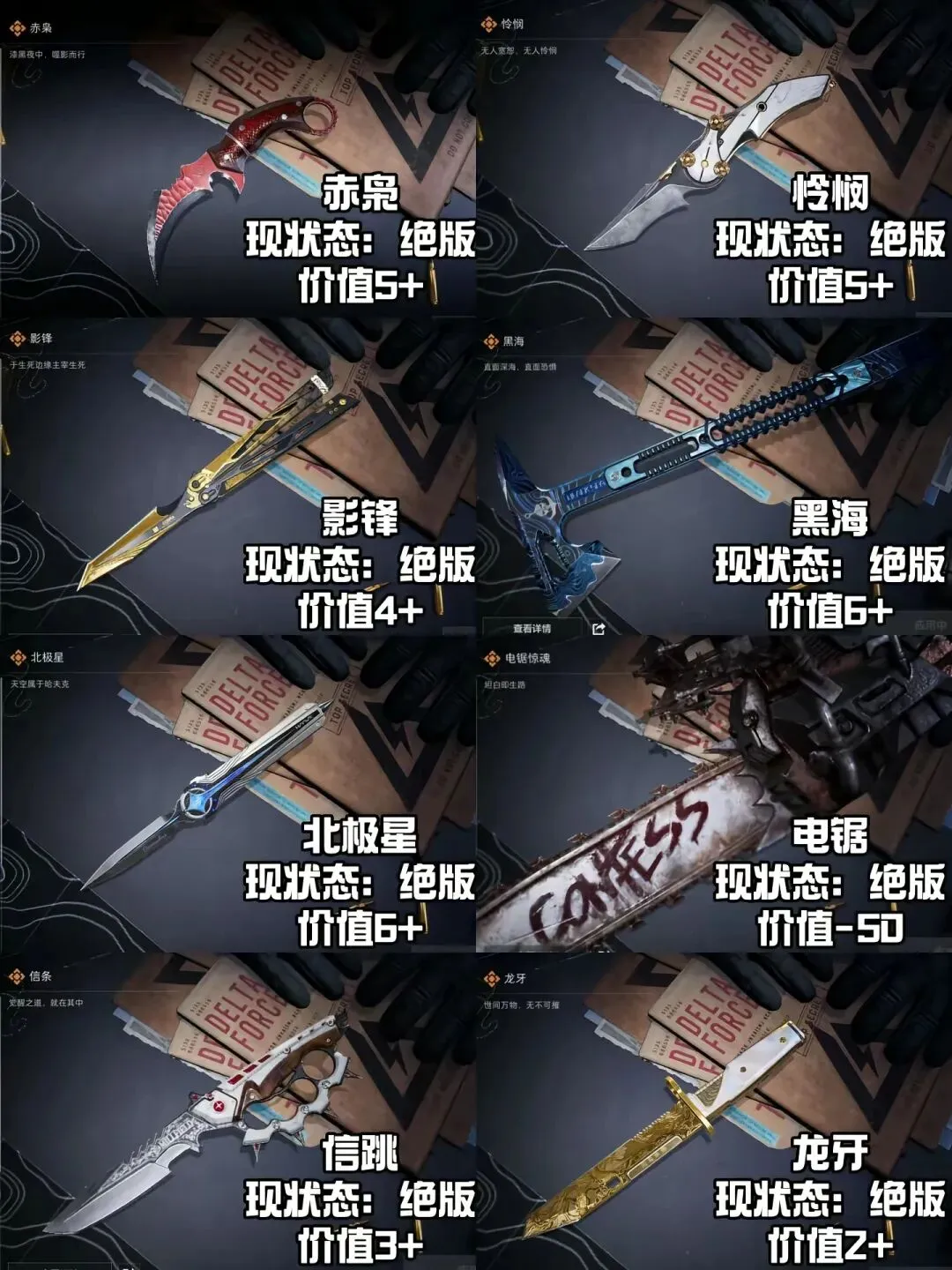 三角洲行动|三角洲刀皮价值排行榜来啦!信条果然才是唯一真神,各方面吊打北极星!目前已绝版!电锯:时间会说明一切!