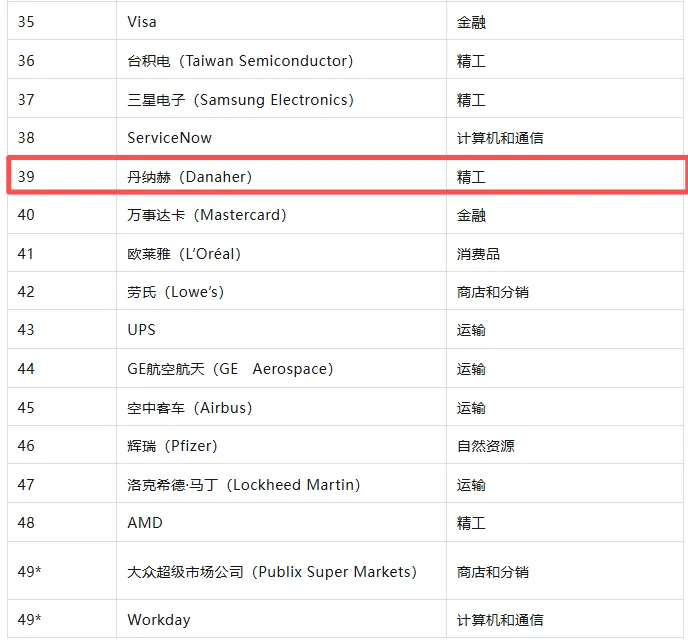 >《财富》全球最受赞赏的公司排行榜全明星榜单揭晓!丹纳赫上榜!