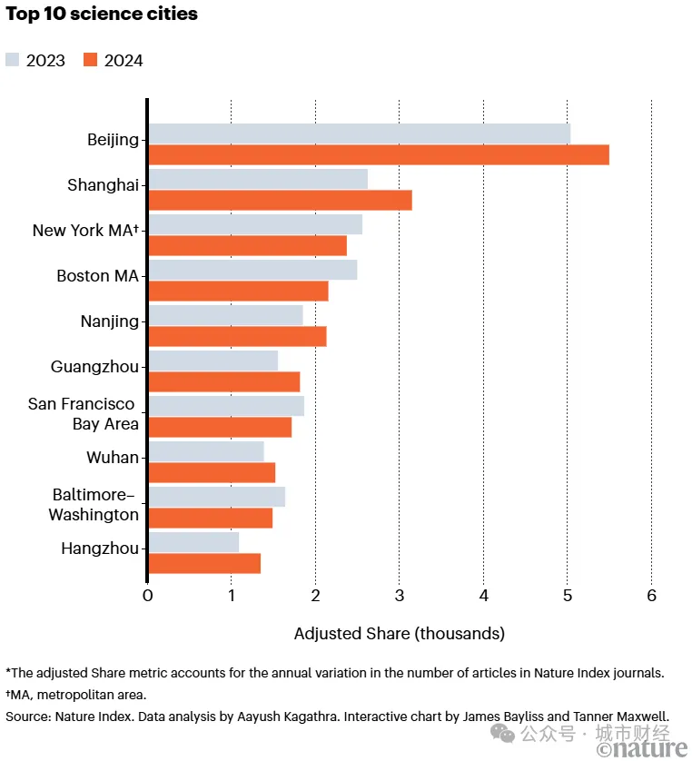 自然指数发布2024科研城市榜:中国首次占据十强中六席,杭州进步最快
