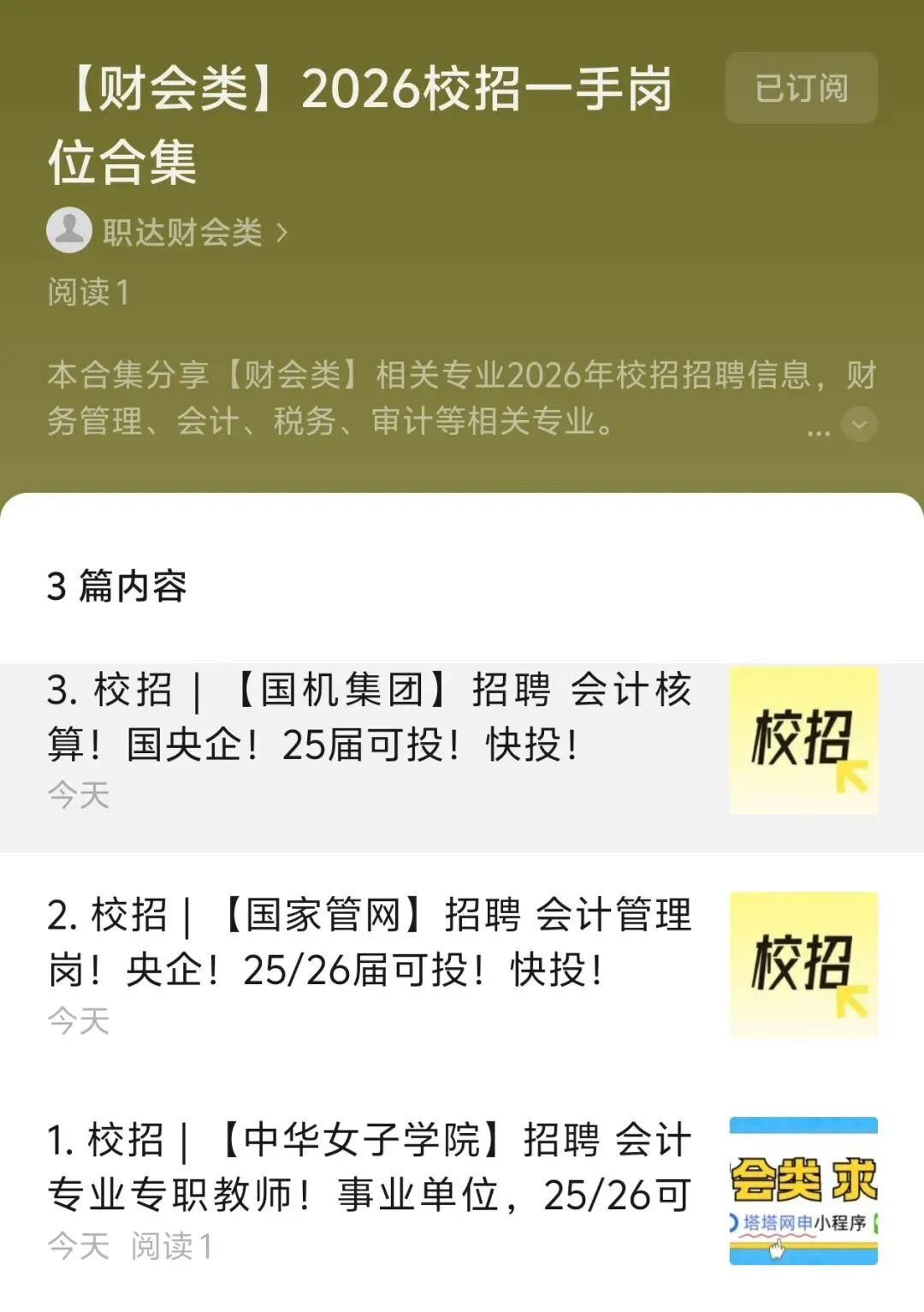 👉【财会类】2026校招一手岗位合集