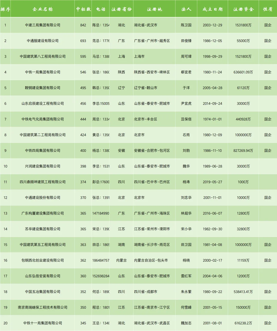 1、2025全国建企中标排名,数据统计时间截止到2025.12.31日。