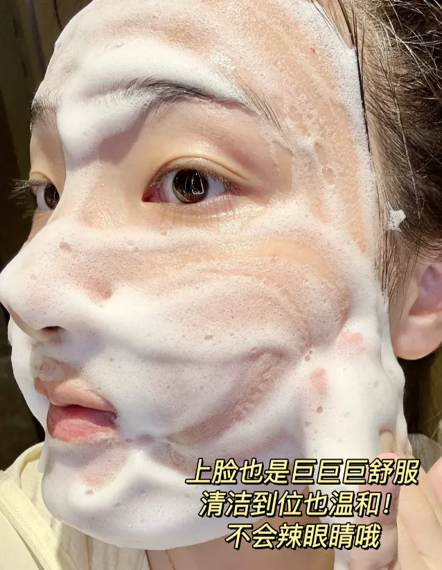 温水一冲,泡沫秒消失,发际线/耳后都干干净净!洗完脸蛋水润不紧绷,后续护肤品吸收速度翻倍