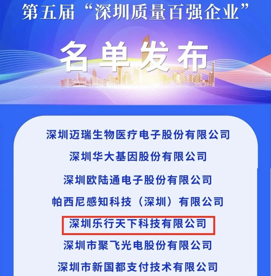 深圳乐行天下科技公司成功入选“深圳质量百强”