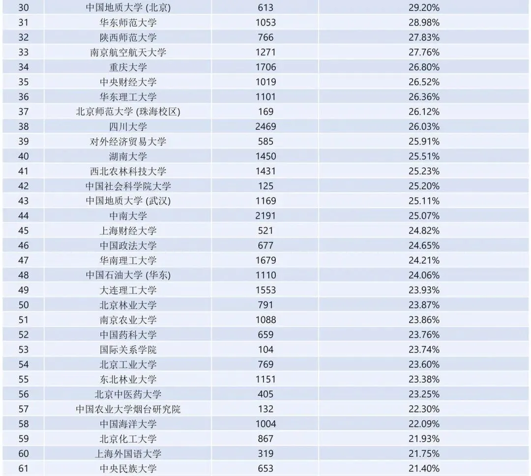二、全国部分学科类高校26届保研率分布