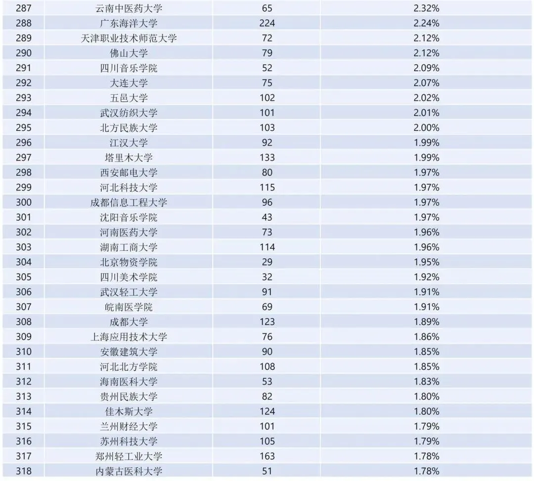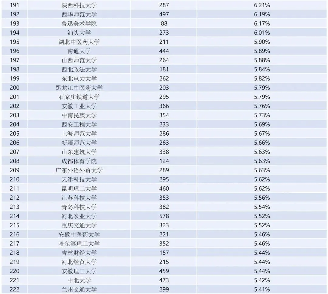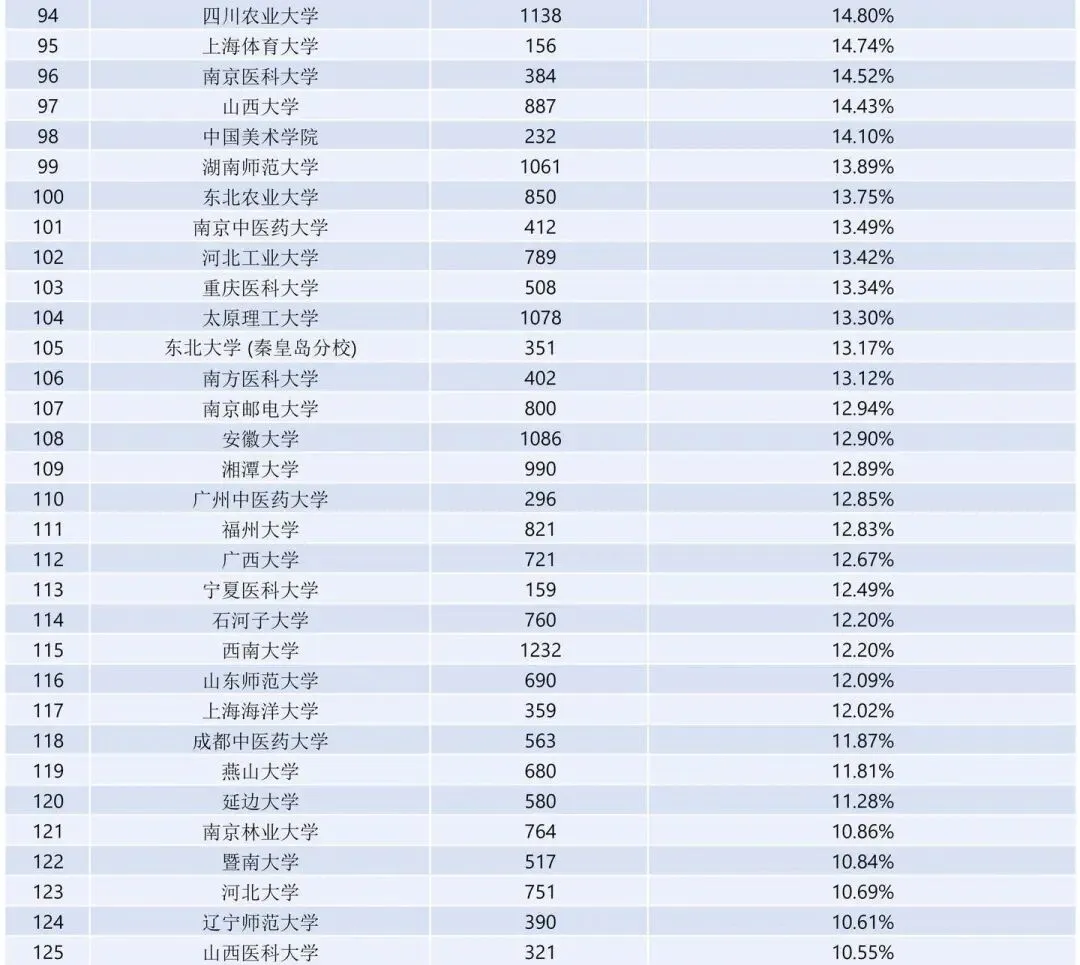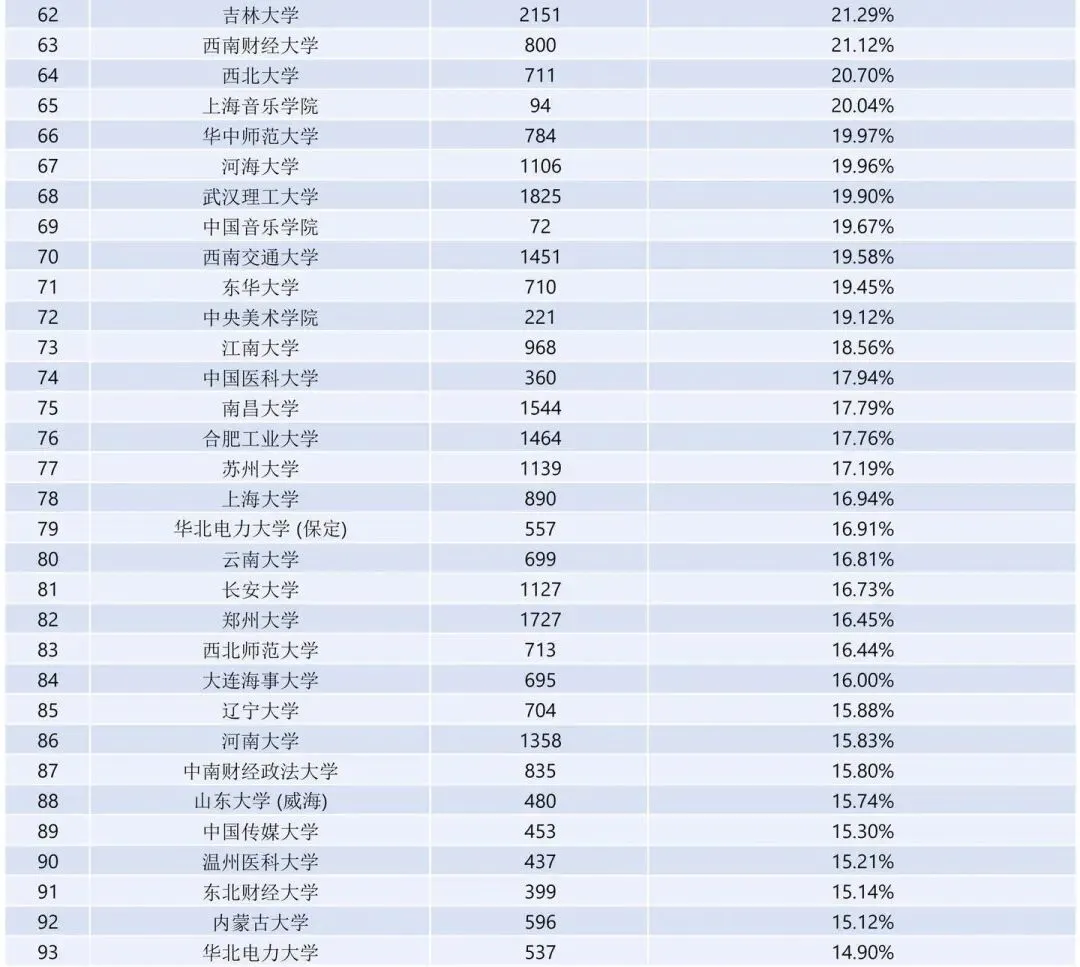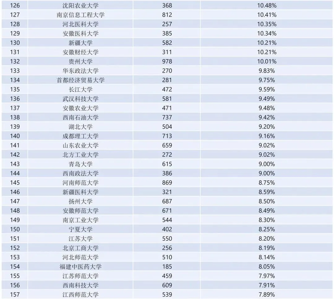 值得注意的是,东北财经大学(保研378人,保研率14.38%)和安徽财经大学(保研311人,保研率10.15%)在双非院校中保研率较为出色。
