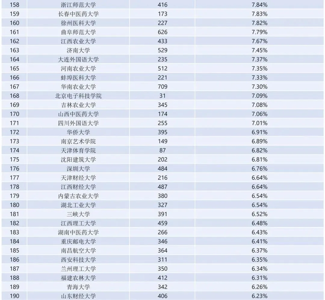 最后,财经类高校受其学科特性影响,在当下国家急需的“硬科技”领域之外,未纳入政策红利范围,因而在科研导向型的当下,保研率相对较低。