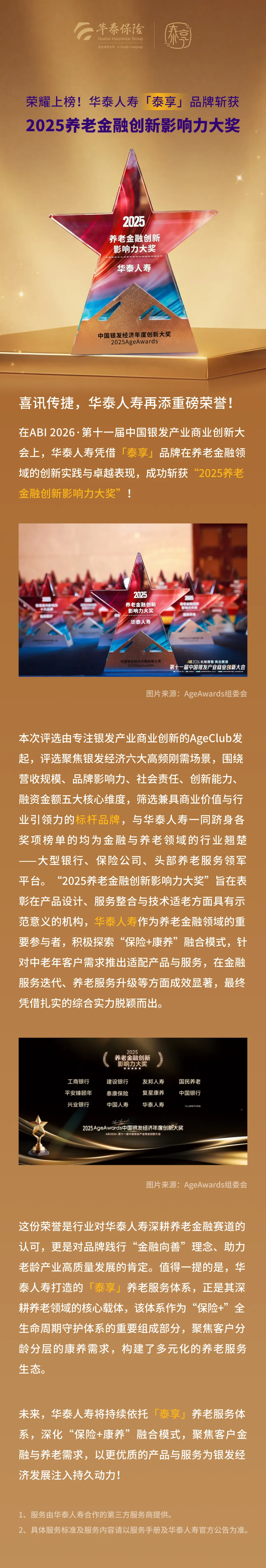 >荣耀上榜!华泰人寿「泰享」品牌斩获 “2025养老金融创新影响力大奖”