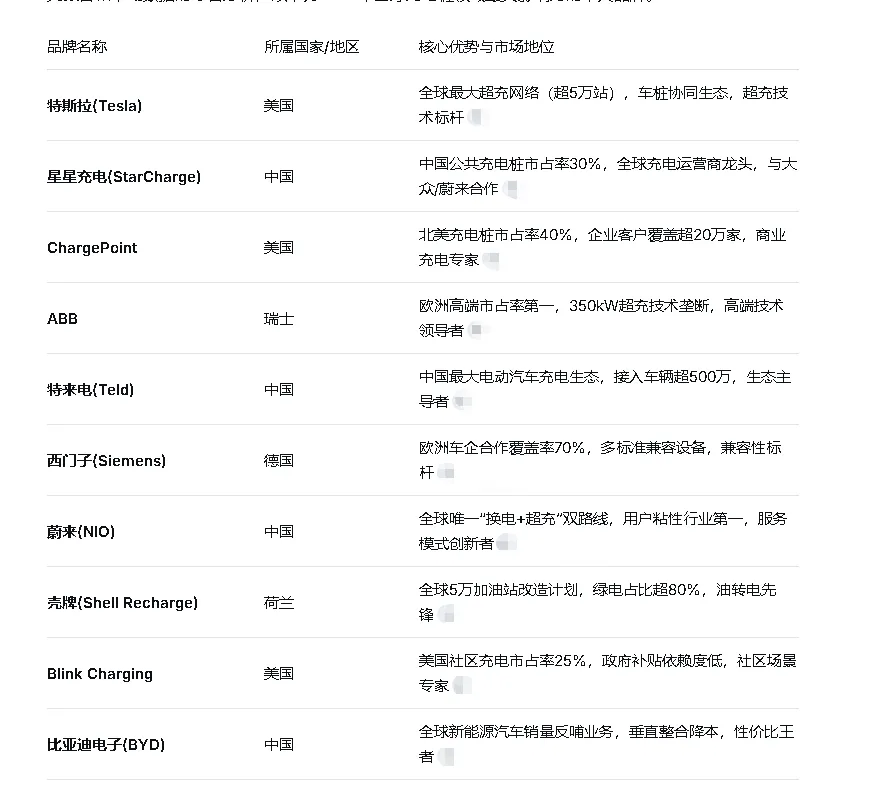 从区域分布来看,中国企业占据了榜单的一半席位,反映了中国在全球充电桩市场中的领先地位。美国、欧洲企业则在高端技术、商业模式和传统能源转型方面保持竞争力。