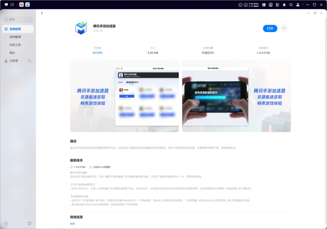 对于现在的手游玩家来说,大概有两个时刻最让人头疼。一是手机空间不够用,动辄几十MB的照片,加上接近30GB的游戏包体,让本就不富裕的存储空间更加紧张,很多时候玩家只能被迫选择性地保留几款游戏。二是大版本的更新,特别是遇到赛季更迭或者周年庆,更新包往往好几个GB甚至上10GB。如果你隔了几个版本没玩,更新一次的时间成本基本等同于重新下载。不过就在最近,我们体验了绿联NAS私有云和腾讯游戏MTGPA团队联合推出的一项新功能,也就是在UGOS Pro系统应用中心刚刚上线的腾讯手游加速器。目前功能已经完成了对《王者荣耀》的适配,据了解,未来还将逐步开放更多游戏资源的接入。它不仅解决了上述痛点,更让我们看到了一种具有未来趋势的游戏体验。通过这套系统,玩家可以直接从本地的NAS里拉取更新数据,这能让手机端的下载速度大幅提升,实现一种近乎无感的体验。随着体验深入,我们发现这不仅仅是针对《王者荣耀》游戏更新的优化。它展示的,其实是NAS在电竞场景下的价值,以及未来家庭娱乐数据分发的一种新形态。提到NAS,很多人的第一印象往往是影视仓库,觉得它就是用来存影视、照片,作用无非是随时随地看剧不卡顿。这种认知在很长一段时间里并没有错,但在体验完绿联NAS后,我发现如果现在还把NAS仅仅当作一个存储设备,显然有点低估了如今的硬件生态。这次我们拿到手的设备是绿联DXP4800 Plus。从上手的第一感觉来看,这台机器的硬件底子相当扎实。它搭载了英特尔Pentium Gold 8505处理器,配备16GB运行内存,最高支持扩展到64GB。就笔者的实际体验来说,16GB已经足够流畅。在系统层面,能看出来UGOS Pro也进行了针对性优化。它的界面和交互逻辑与大家熟悉的PC端非常相似,几乎没有上手门槛。实际操作下来,无论是系统的跟手感,还是多任务处理时的响应速度,都表现得足够流畅。硬件配置只是基础,更直观的冲击来自两个方面:一是容量,二是速度。首先是容量方面,这台设备提供了4个SATA硬盘位和2个M.2硬盘位,最高能支持到136TB的存储容量。对于习惯了手机存储空间的玩家来说,对这个数字可能没什么概念。我们可以做个对比:目前主流的重度手游容量约为20GB到30GB,即便是一部标准的3A大作,体量通常也在100GB上下。相比于手机512GB或1TB空间,NAS提供的存储空间,几乎可以让你忽略容量焦虑这个问题。以往遇到《王者荣耀》这种体量的大版本更新,玩家们通常已经养成了后台更新追剧的习惯。但在这次测试中,NAS并没有给我太多等待的机会。由于NAS已经在后台自动完成了资源包的预下载,当我们点击手机上的“更新”按钮时,进度条几乎是瞬间被推满的。通过绿联NAS私有云可以做到100MB以上的下载速度,具体速度受网络环境影响在理想的千兆局域网环境下,局域网内的传输速度可以稳定在100MB/s左右。这种体验在主观上直接消除了“等待”这个环节。对于已经习惯了几MB/s更新的玩家来说,这种“点击即玩”的反馈是非常爽快的。值得注意的是,这项功能支持多人共享。只要连入同一个局域网,家人或朋友的手机也能享受极速下载,且手机端无需额外安装绿联云App,真正做到了零门槛。而除了“快”,整套操作的便利性,也是这次体验中让我们印象深刻的地方。在过去,如果玩家想要在家里搭建一个类似的本地缓存节点,通常门槛极高。你可能需要具备一定的Linux代码基础,懂得如何折腾Docker容器,还要配置复杂的端口映射......这些技术门槛直接劝退了绝大多数人。但在这次绿联NAS私有云与腾讯游戏MTGPA团队的合作中,我们看到了双方在“易用性”上做的减法。在绿联UGOS Pro系统中,部署这个功能只需要简单的几步。首先是在PC端,直接在应用中心下载安装“腾讯手游加速器”,打开应用并启用“极速获取游戏资源”,然后进入游戏就能完成匹配;这里需要注意的是,你要是王者荣耀前瞻版用户,就选择王者荣耀前瞻版资源提前缓存。如果是王者荣耀用户,则选择王者荣耀资源提前缓存。而在移动端,可以直接通过手机上的《王者荣耀》游戏内授权NAS,给NAS一键安装“腾讯手游加速器”。设置好之后,以后每个版本的更新都能在NAS后台默默完成下载。其实,这套系统的逻辑非常简单直接,就是将NAS作为一个本地的高速缓存服务器,利用局域网的高带宽优势来传输数据。这项功能并非市面上常见的PCDN技术,PCDN通常是把用户的设备当成节点,将你下载过的数据分发给其他陌生用户。而绿联NAS严格限制在局域网内部,外部设备无法获取资源,也不涉及对外上传,在安全和隐私上足够有保障。需要说明的是,这不是云游戏模式,玩家仍然需要用手机下载游戏,游戏本体和运算依然是在手机本地进行,NAS负责的是资源包的高速分发。很多人会疑惑:如果只是为了更新快一点,我们真的需要部署一台NAS吗?实际上,绿联NAS在游戏领域的应用远不止帮手游做个预下载这么简单。对于PC游戏或者3A游戏玩家来说,它同样是一个可以改变当下游戏体验的硬件设施。我们在体验绿联DXP4800 Plus时,发现它支持一个对游戏玩家非常实用的功能——iSCSI。简单来说,就是玩家可以将大型游戏装进NAS里。得益于DXP4800 Plus配备的万兆网口扩展能力(需要一定的网络环境支持),它的传输速度完全可以媲美本地硬盘。我们在实测中将一些PC游戏和3A大作,直接装在了NAS储存盘里,使用起来基本感觉不到
