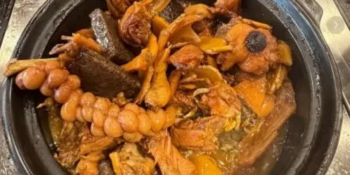 鸭肉新鲜,口感很好,不会齁甜,也不会太咸口。这家值得打卡,没有堂食,不介意的话,可以在门口的小桌子蹭茶,吃姜母鸭。