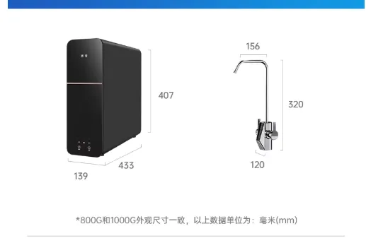 核心设计:采用双膜过滤结构,区分净水和纯水出水,机身体积小巧不占橱柜空间,水路设计优化水资源利用率,减少废水产生。