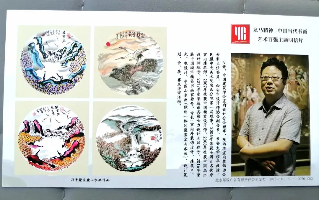 中国邮政发行“龙马精神——中国当代书画艺术百强主题明信片”,习晋老师的聚宝盆山水画作品荣耀入列,这已是他连续七八年入选该活动,彰显业界对其艺术造诣的持续认可。