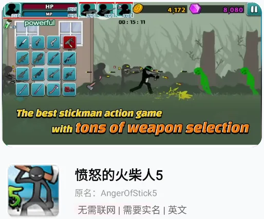 火柴人系列永远的神,简单粗暴又解压。城市里出现了一群搞事的敌人,还把无辜的人变成了僵尸,你要操控火柴人英雄,收集6种可靠同伴,组队闯关打敌人,操作简单但关卡超有挑战性,没网的时候随手开一把,解压又上头!