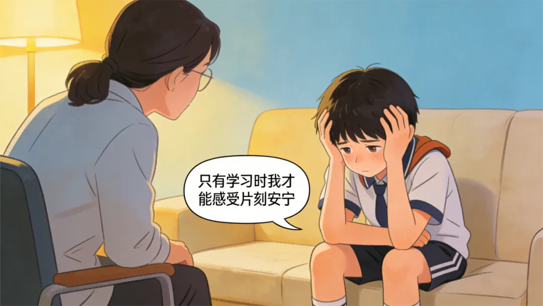 “只有在做题的时候,我才有发呆的权利、有算错的权利、有尝试很多次还解不开的权利。”孩子黯淡的眼里终于有了一丝光芒,“练习册就在那儿,它不会催我,我可以慢慢想,可以自己决定用多少张草稿纸,在草稿纸上乱写多少步骤。只有数学题解出来时,我才能感觉到一点开心,同学也很崇拜我,让我觉得我不是一无是处。”