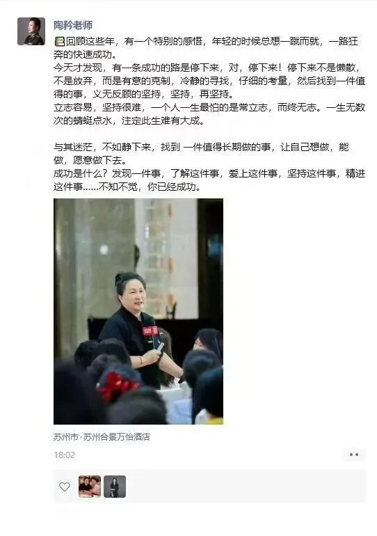陶老师这段话真的戳中内心。我们总被催促着快跑,却忘了“停下来”是为了看清方向,更好地出发。找到那件值得深耕的事,用坚持铸就专业,这才是我们课程想传递的核心价值