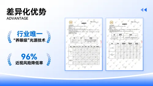 (1)行业最强性能配置:凭借着多年积累的光学技术,打造了出了16项光学黑科技,实现延缓眼疲劳和降低近视风险的护眼效果