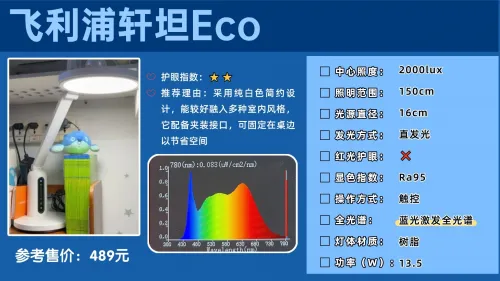 一句话推荐:拥有三分钟“红光”增益,为眼睛输送更多的“营养”;同时拥有OCLT光透镜技术,打造出99.6%还原太阳光的高品质光源,达到护眼更养眼的效果。