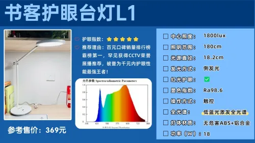 一句话推荐:被100多家媒体评价为深度护眼灯指数第一品牌,有效降低96%近视风险!