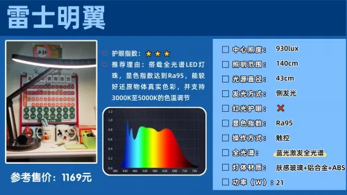 学生护眼灯排行榜第八名:雷士明翼