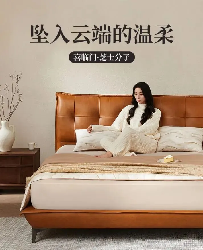 乐歌CQ1皮床是现代简约风格的典范之作,它懂得用最干净的线条诉说温柔。整床没有一丝多余的装饰,巧克力般醇厚的真皮色泽在灯光下流淌着高级的质感,能为卧室定下低调轻奢的基调。它的软包床头是一大亮点,内部填充了高密度回弹海绵,倚靠上去瞬间如同陷入云朵,能够温柔地化解你工作一天后的紧绷感。这种“沙发级”的靠背体验,让睡前靠在床上玩手机、聊天的时光变得格外惬意。