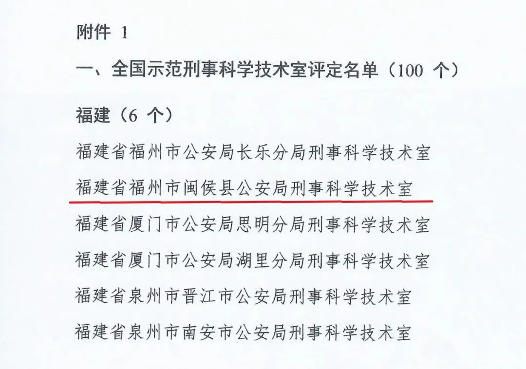 2026年1月,经公安部评定专家组严格评审与实地考核,闽侯县公安局刑事科学技术室凭借扎实的专业队伍、完备的基础设施、先进的装备水平、规范的管理体系以及突出的实战业绩,从全国3000余家刑事科学技术室中脱颖而出,再次获评“全国示范刑事科学技术室”。这是我局技术室在4年内连续2次荣膺此项国家级荣誉。